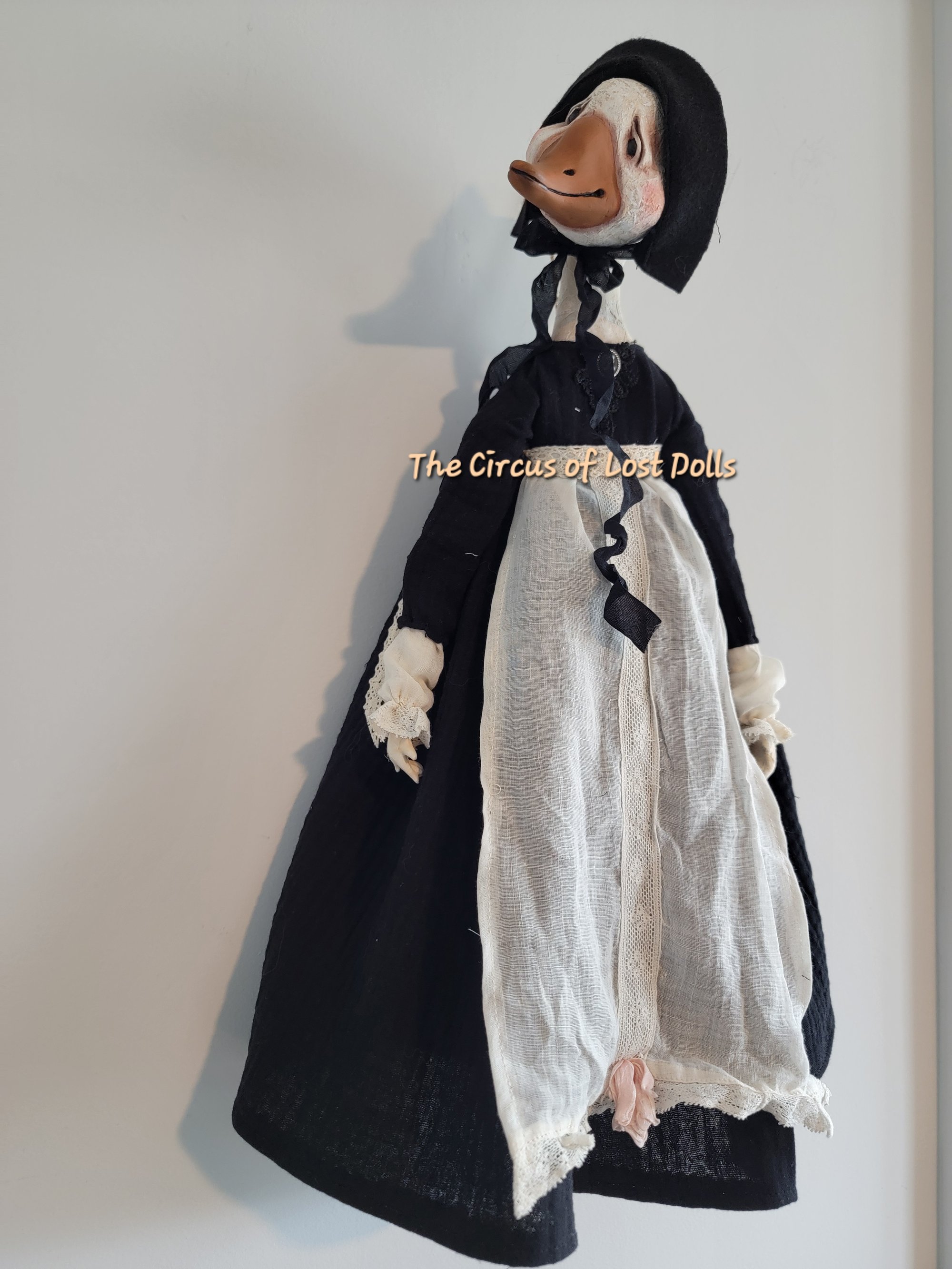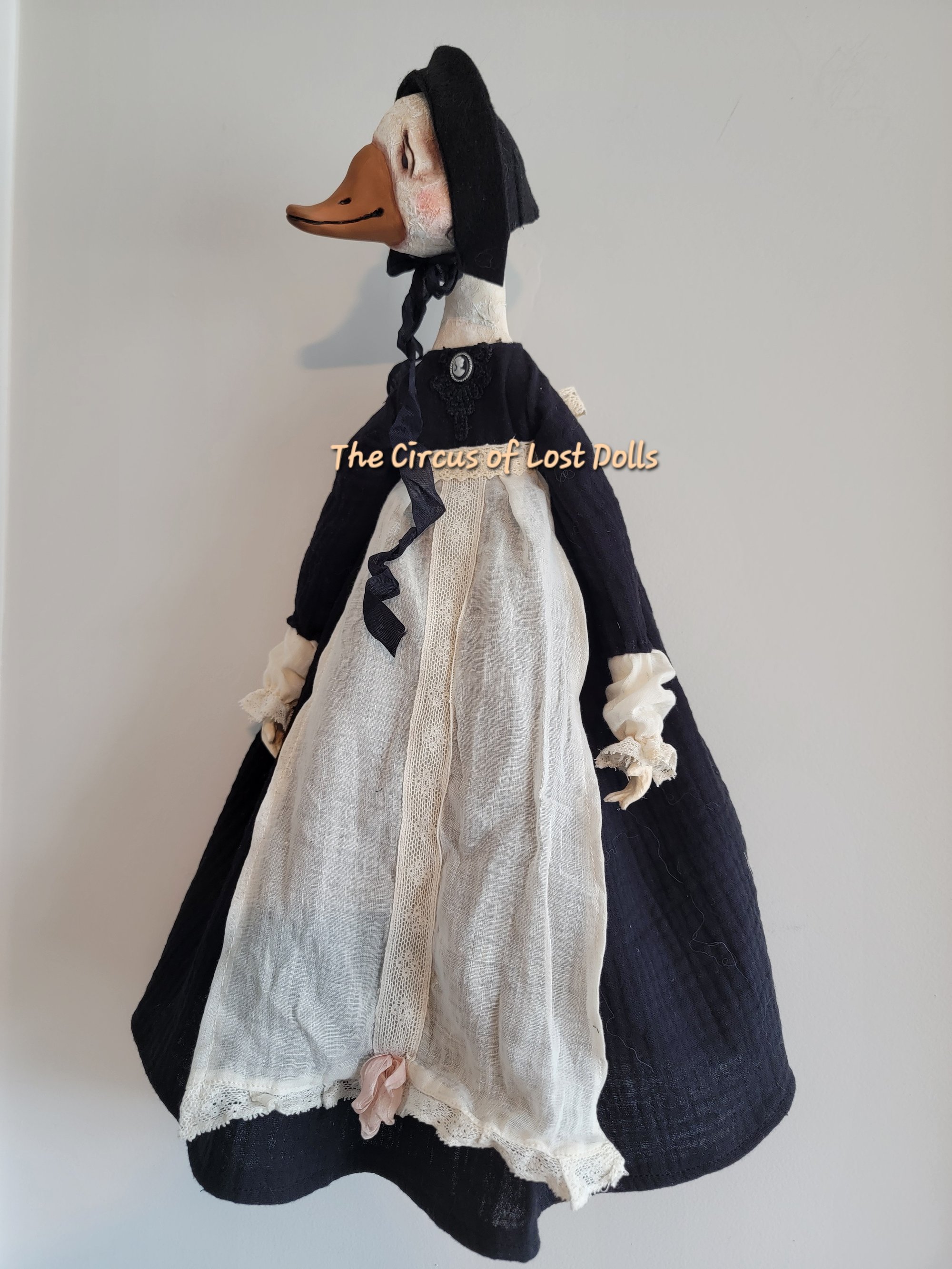 She's hand sculpted, made of paper clay and paper machè, she is 17" inches taller, sha has a hook / string at the back to be hung on the wall.
