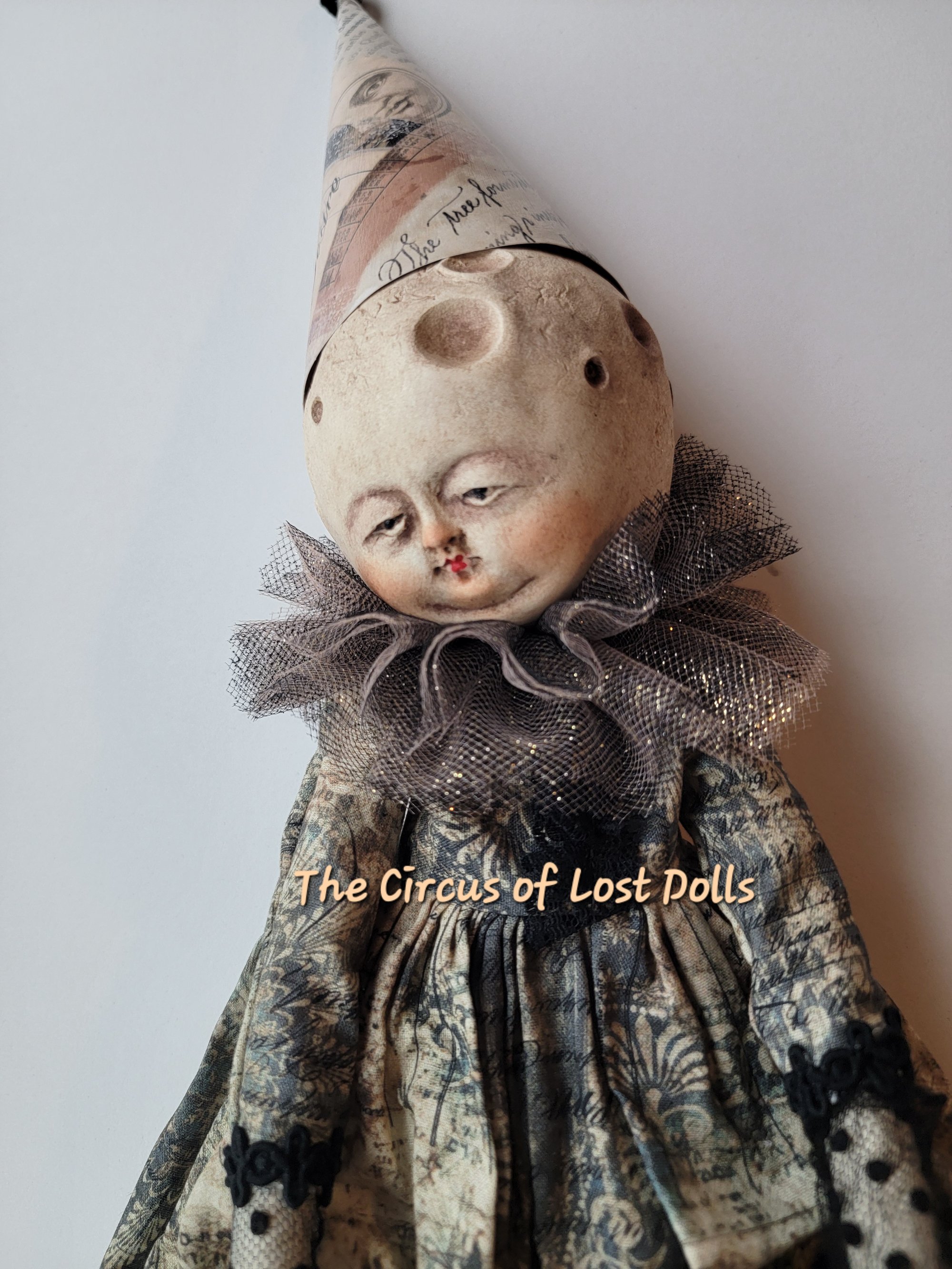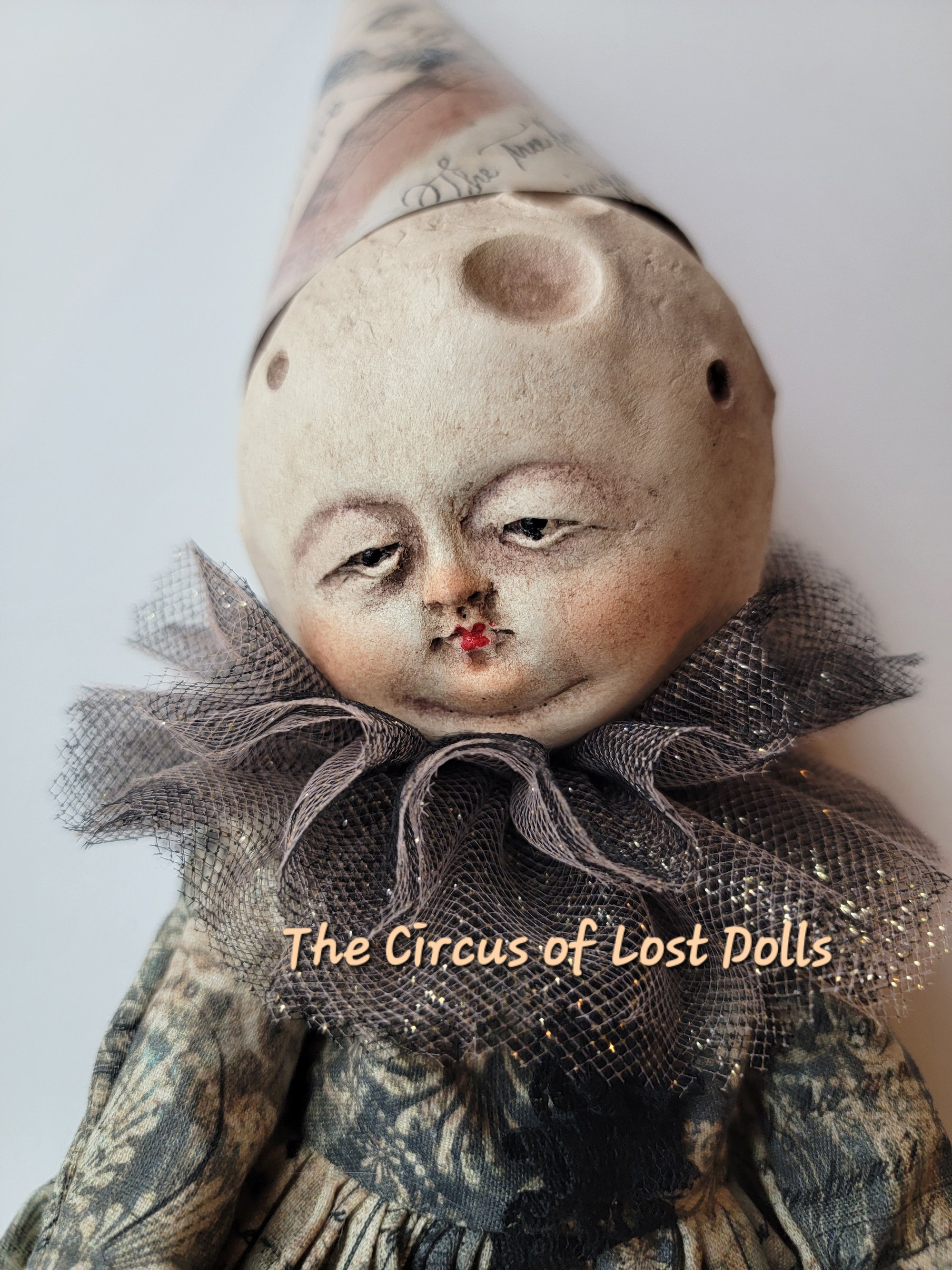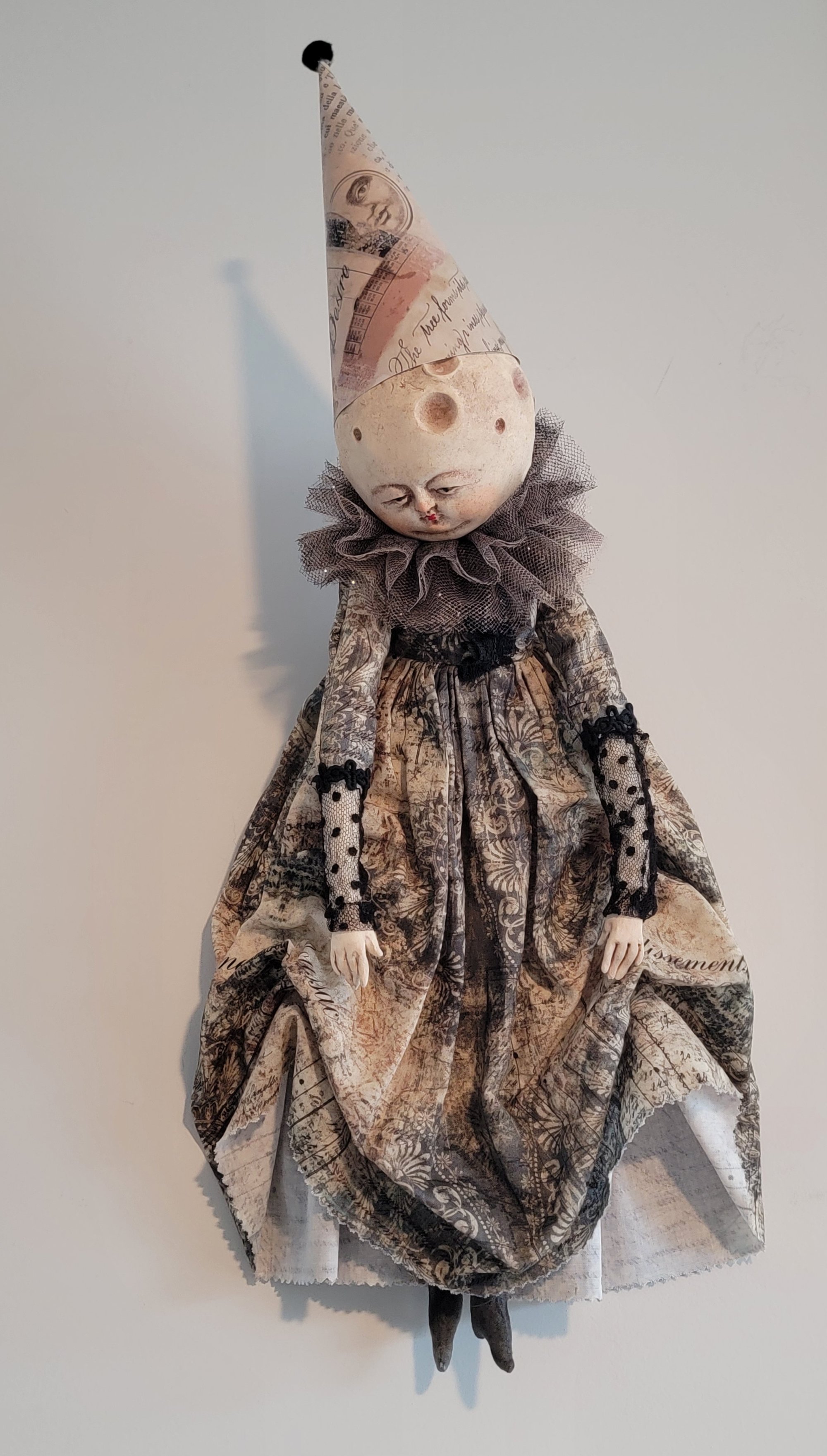 Made of paper clay, her body is soft sculpted made of cotton.